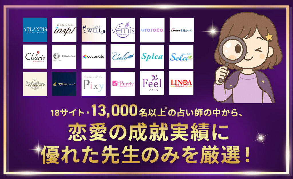 ※電話占いラボ総合ランキングへランクインしている全18サイトの合計在籍占い師数(一部サイト間にて重複有)