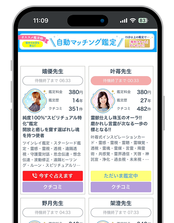 鑑定予約または待機中の先生に電話