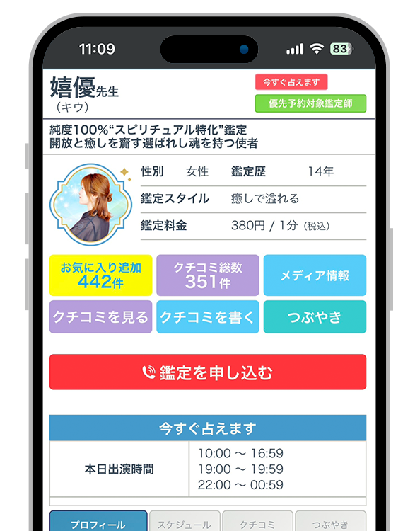 嬉優(キウ)先生をはじめ、厳しい審査を通過した占い師のみが在籍しており、鑑定の質を重視した体制が整っています。
