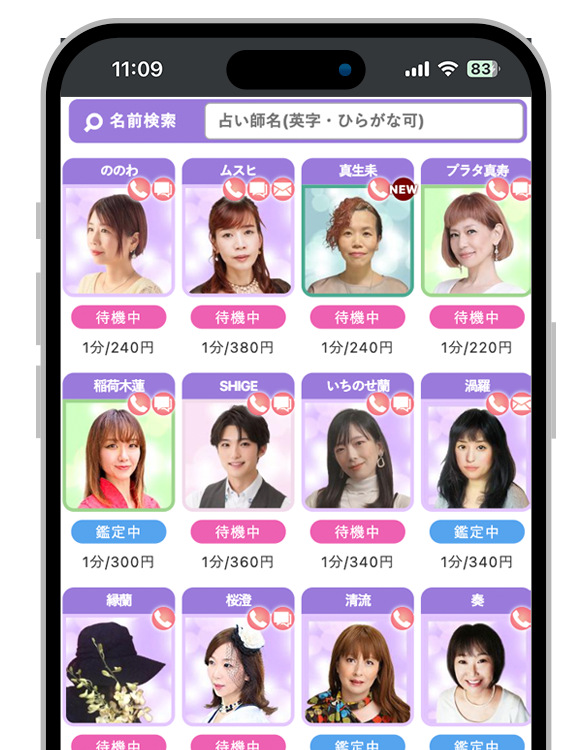 待機中の占い師も多く、人気の先生でも予約システムを活用すれば確実に鑑定を受けられます。